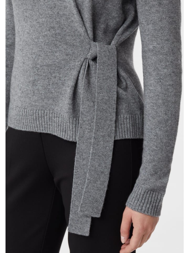 Этот высококачественный трикотажный свитер из мягкой шерстяной смесовой пряжи украшен изысканным завязкой на талии. Круглый вырез горловины с ребристой отделкой и эластичная ткань обеспечивают максимальный комфорт. Классический крой идеально подчеркивает фигуру. Носите его с джинсами или элегантно с юбкой - декоративная деталь добавит стильный штрих. Идеально подходит для универсальных образов: от офиса до ужина.