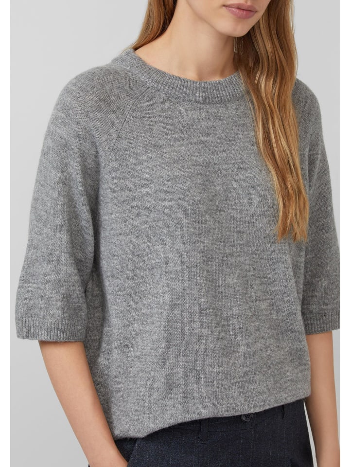 Уютный и теплый свитер с короткими рукавами из смеси альпаки для уютных моментов. Мягкая пряжа с рукавами реглан и ребристыми манжетами невероятно приятна к телу. Свободный крой и нашивка с логотипом создают непринужденный образ на каждый день.