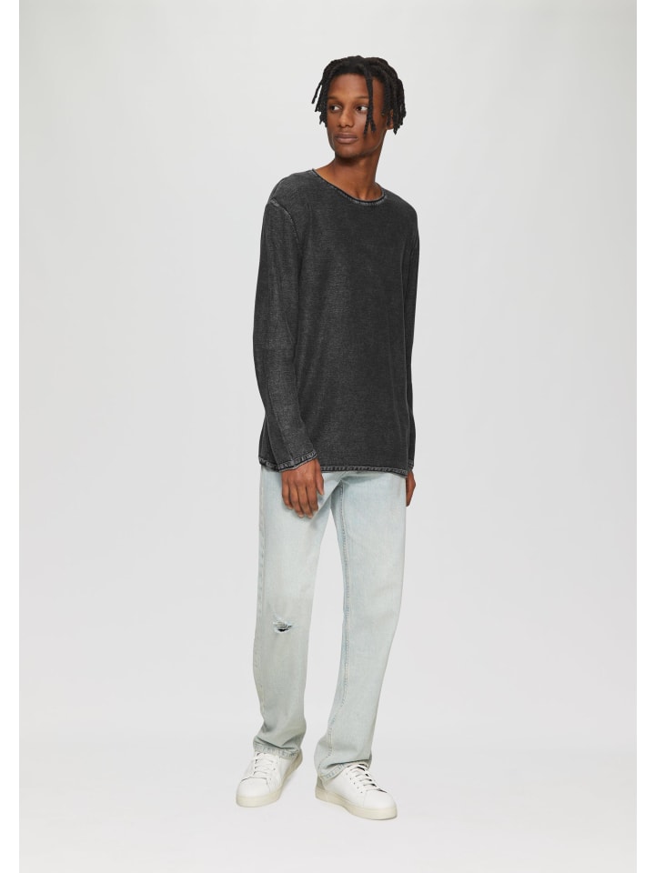 Повседневный трикотажный свитер для крутых парней! Тонкий трикотаж из стираного хлопка с подвернутым краем идеально дополнит ваш повседневный образ. Высококачественный, эластичный и удобный - ваш новый фаворит для расслабленных дней и вечеров.