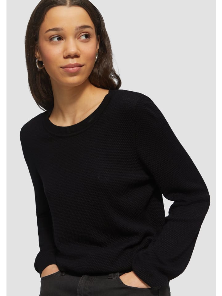 Стильный вязаный свитер для повседневной жизни! Благодаря текстурированной смеси вискозы и эластичной тонкой вязки он адаптируется к вашим движениям. Круглый вырез горловины и классический крой делают его универсальным дополнением к вашим нарядам.