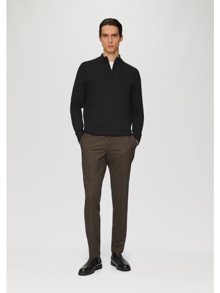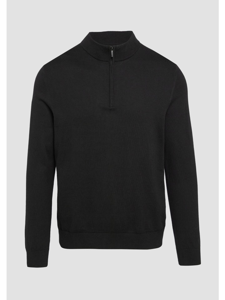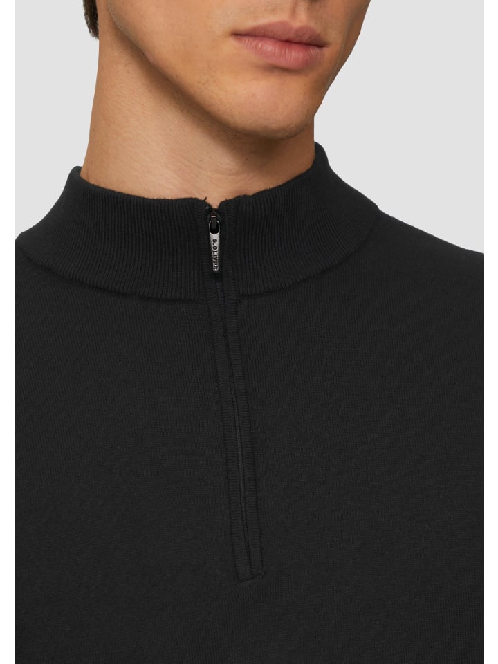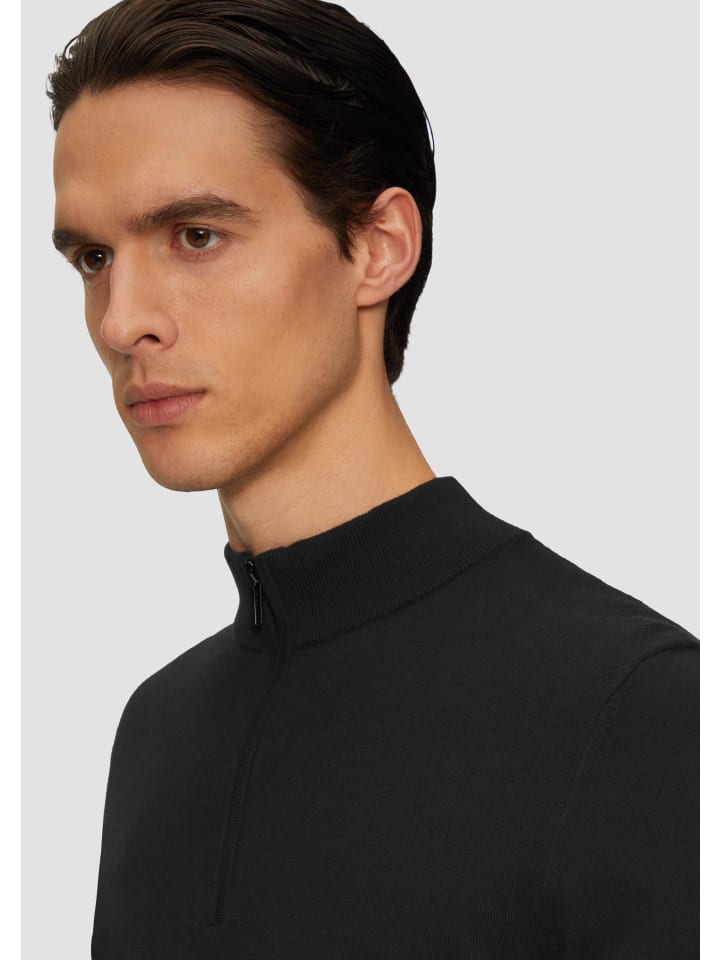 Роскошь на каждый день: этот трикотажный свитер с водолазкой сочетает в себе комфорт и стиль. Смесь 90% хлопка и 10% шелка невероятно мягкая и согревает. Молния на воротнике и ребристая отделка придают свитеру классический крой современный вид. Идеально подходит для прохладных осенних дней или уютных зимних вечеров - сочетайте его с джинсами или брюками чинос для создания непринужденного элегантного образа.