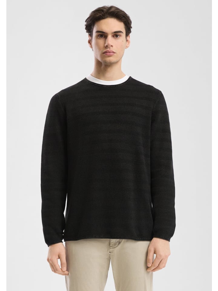 Повседневный трикотажный свитер с характерной ребристой текстурой и прохладной стиркой. Классический крой из мягкого хлопка с подвернутыми краями и трикотажным воротником делает его идеальным дополнением к непринужденным повседневным образам.