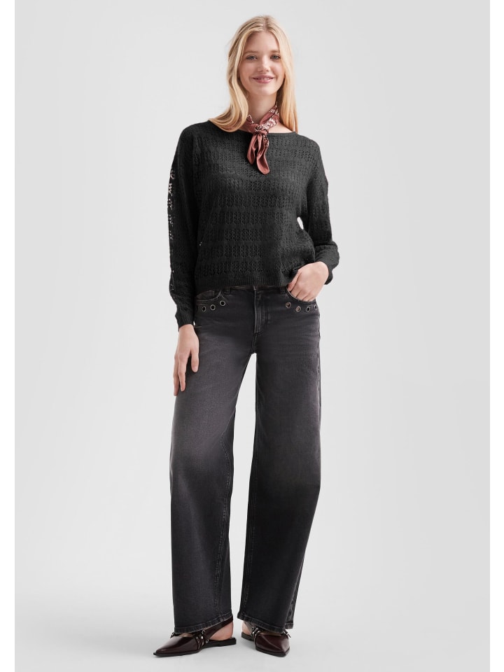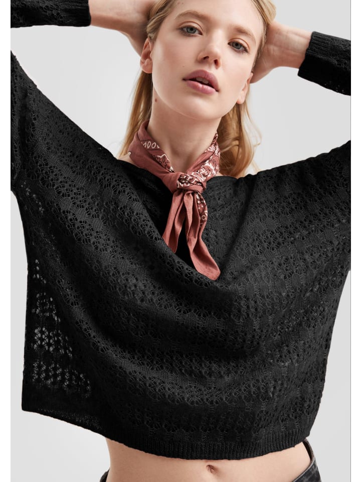 Этот воздушный и легкий трикотажный свитер свободного кроя выведет ваш повседневный стиль на новый уровень. Нежный ажурный узор и спущенные плечи создадут непринужденный образ для ваших повседневных приключений.