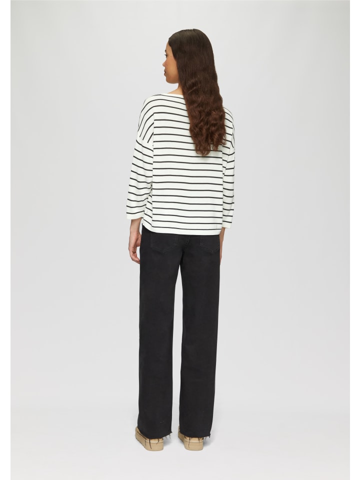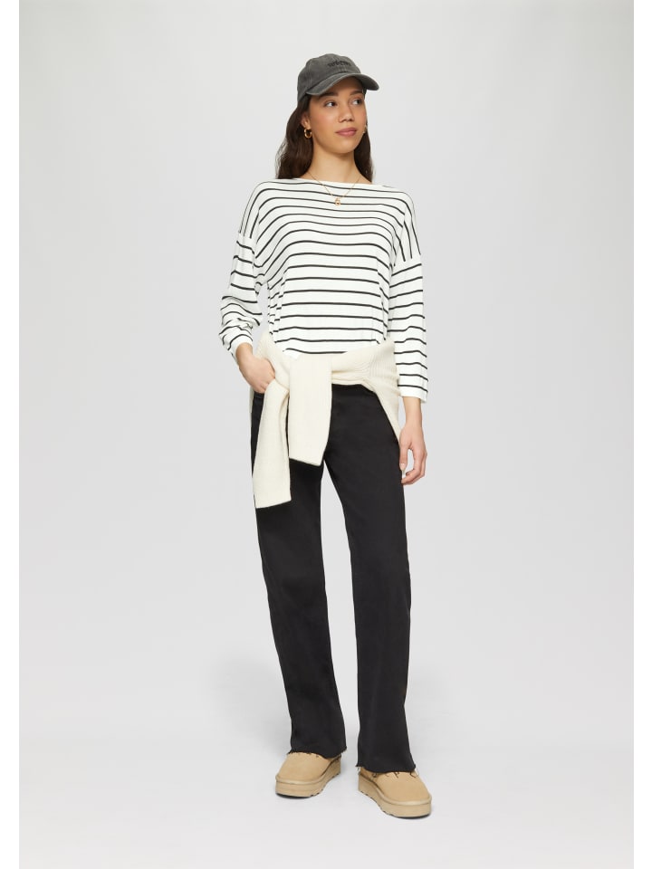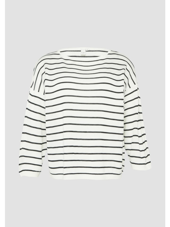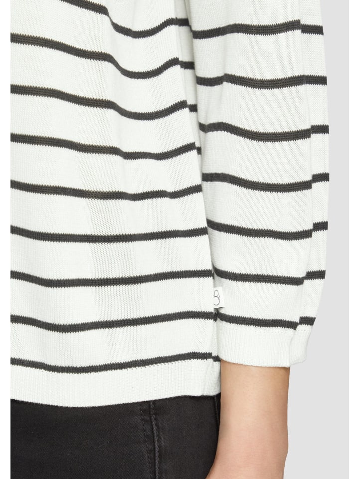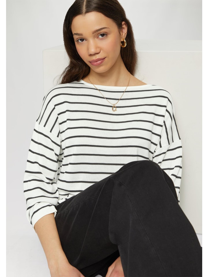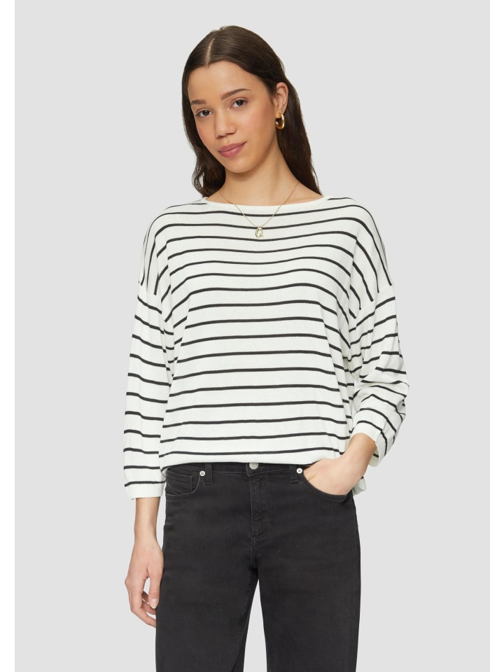 Полосатый трикотажный свитер для хорошего настроения! Этот легкий свитер из смесовой вискозы с рукавами 3/4 и вырезом «лодочка» идеально подходит для расслабленного образа жизни. Будь то встреча за чашкой кофе или прогулка - вы всегда будете выглядеть стильно и непринужденно. Свободный крой для максимального комфорта!
