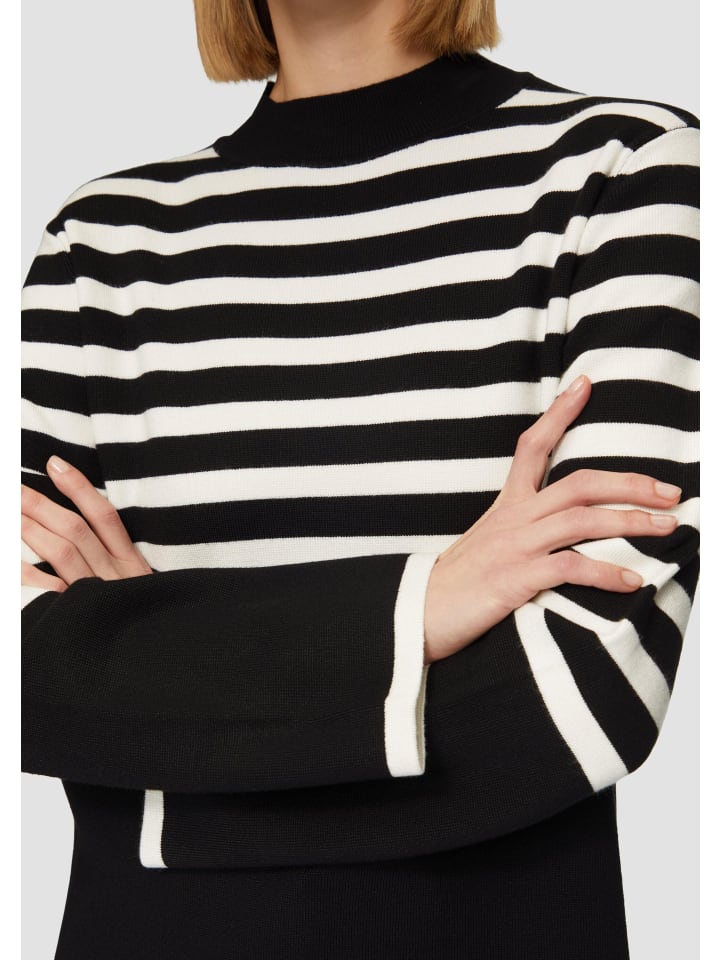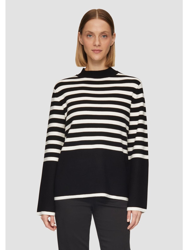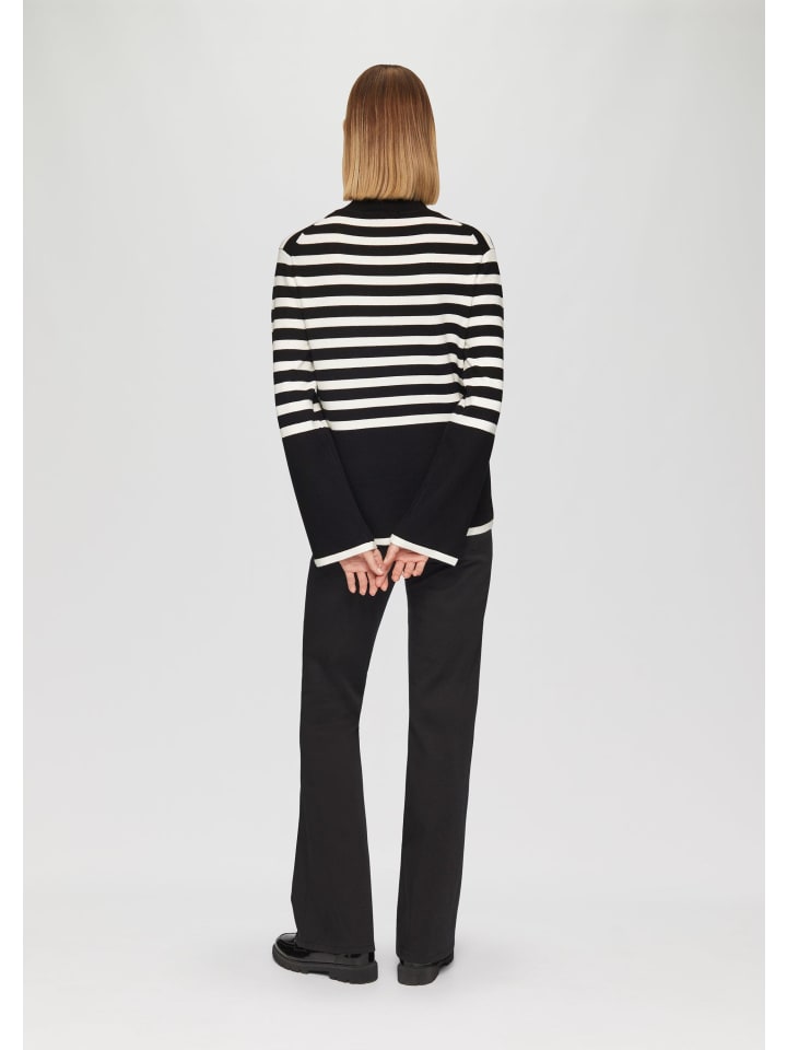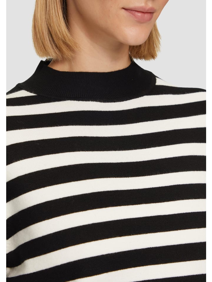 Полосатый и стильный: наш трикотажный свитер с расклешенными рукавами - ваш новый фаворит этой осени! Классический крой подчеркивает любую фигуру, а воротник-стойка добавляет элегантности. Носите его с джинсами или нарядно с юбкой - этот тонкий трикотажный свитер из вискозной смеси идеально подходит для любого случая. Как бы вы его носили?