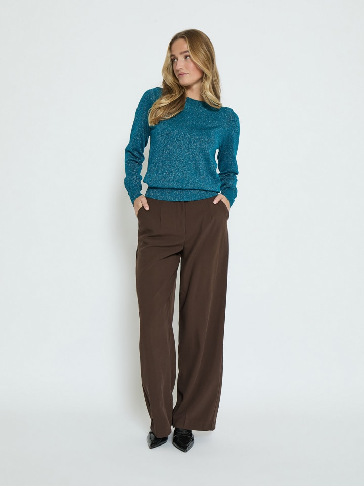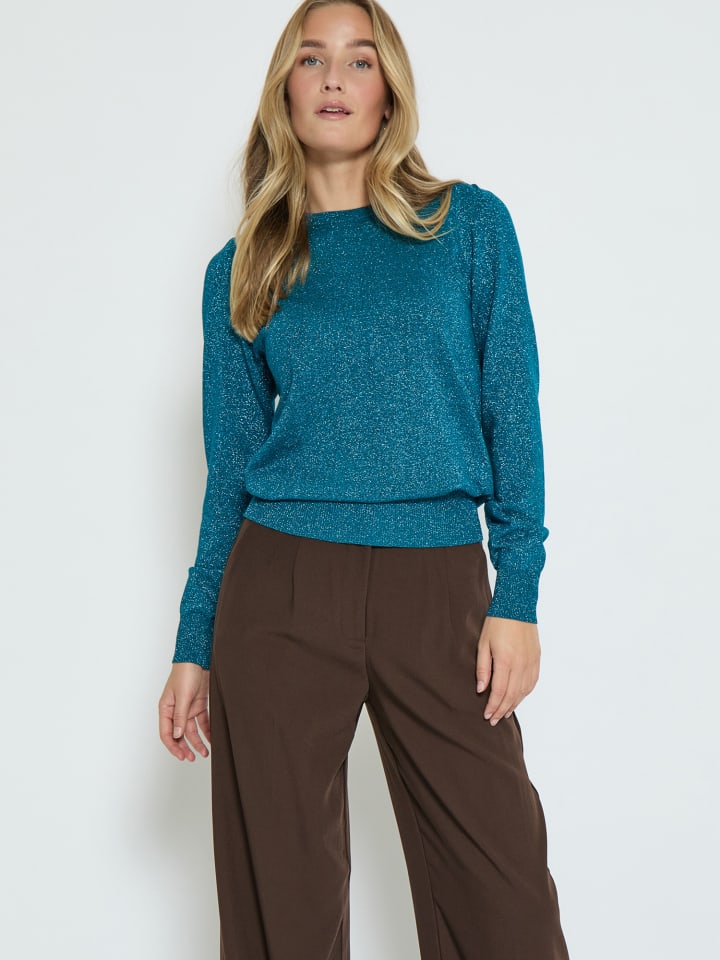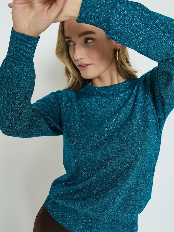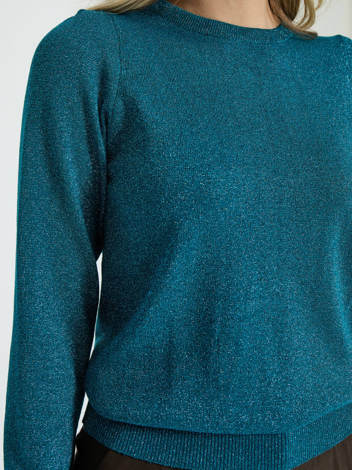 Свитер PCRemi выполнен из тонкого и эластичного трикотажа, что делает его комфортным в носке. У свитера длинные рукава, круглый вырез горловины и мерцающая отделка.