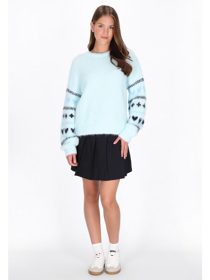 Добавьте зимнего настроения в свой гардероб с этим стильным вязаным свитером из коллекции Young Fashion - идеально для школьного сезона и прохладных дней. Свободный крой, круглый вырез горловины и длинные рукава-фонарики со спущенными плечами создают непринужденный, но модный образ. Изготовленный из мягкой, уютной трикотажной ткани, он обеспечивает комфорт и тепло в течение всего дня. Классический норвежский узор добавляет очарования и делает его идеальным как для повседневной носки, так и для праздничных образов. Теплый, удобный и стильный - незаменимая вещь для холодного времени года.