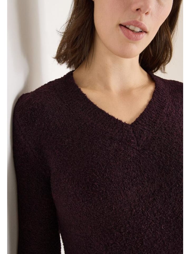 Вечно красивый и невероятно мягкий: свитер из букле с V-образным вырезом. Этот свитер с V-образным вырезом из букле привнесет в ваш гардероб ощущение комфорта. Благодаря уникальной текстуре букле, классическому V-образному вырезу и тонким ребристым манжетам этот свитер станет идеальным спутником в прохладную погоду. Он сочетает в себе женственную элегантность и уют, обеспечивая вам приятные ощущения в течение всего дня.