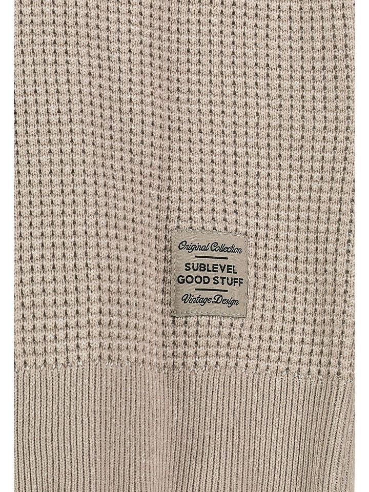 - Ребристая вязка: Вырез горловины, манжеты, подол