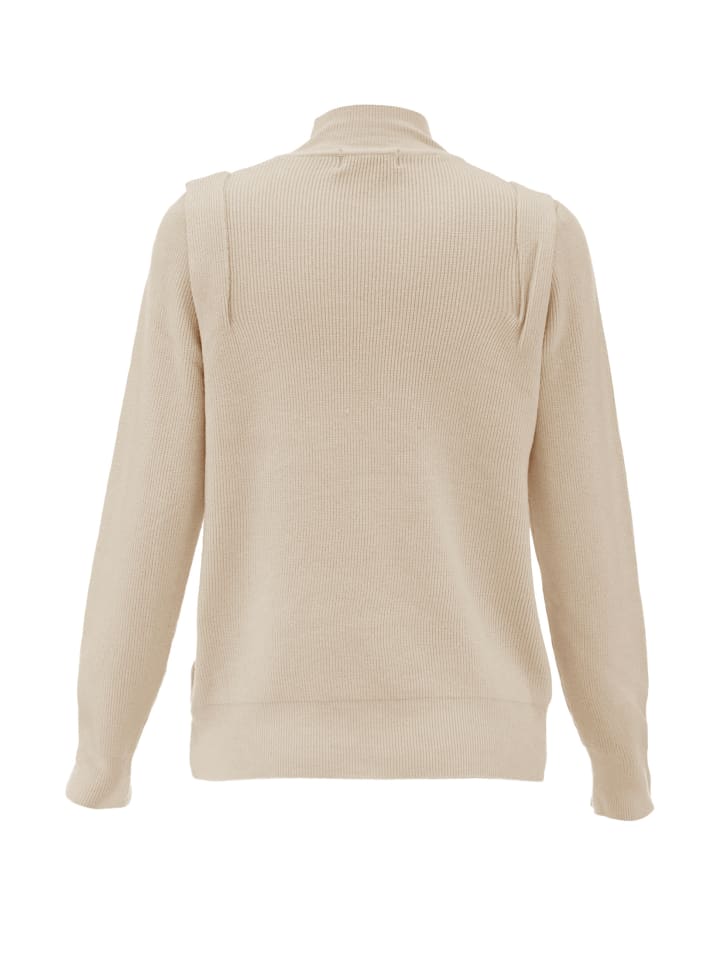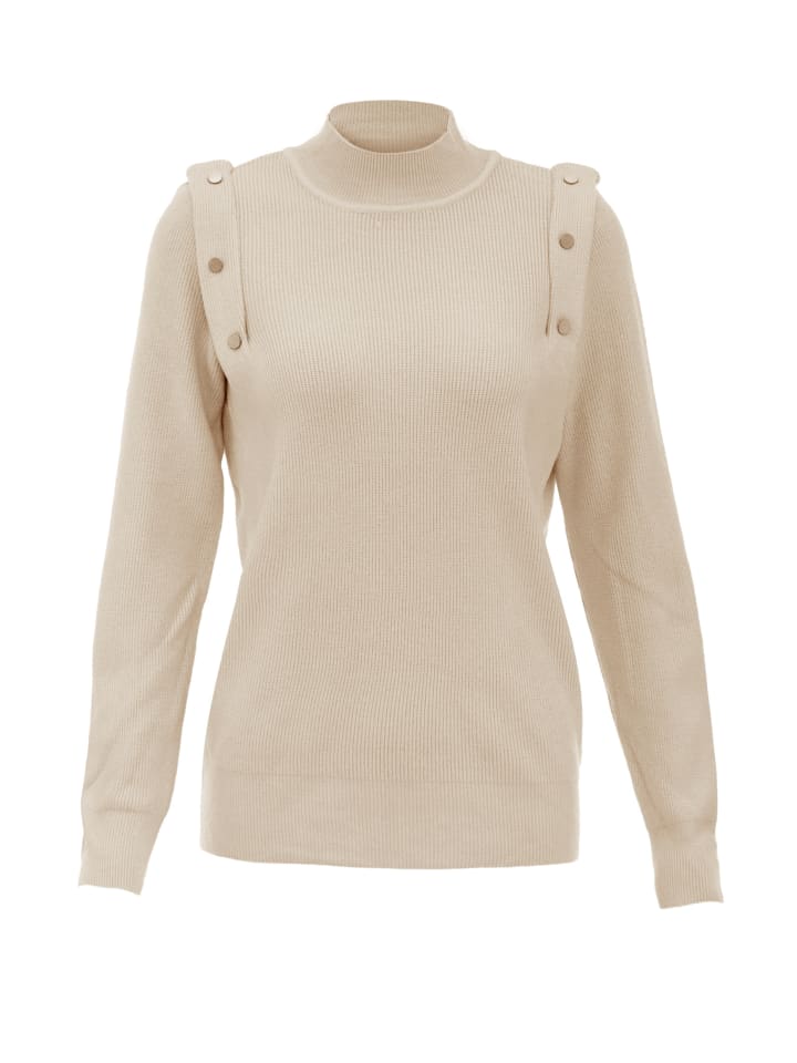 Этот свитер с длинными рукавами, водолазкой и рубчатой текстурой по всей ткани выглядит изысканно. Украшенный рядом декоративных пуговиц на плечах, он сочетает в себе классическую элегантность и современный стиль. Приталенный силуэт, манжеты и низ отделаны рубчатым узором для дополнительной стильности. Разработанный совместно с Caspio, этот свитер сочетает в себе вневременной стиль и современный дизайн.