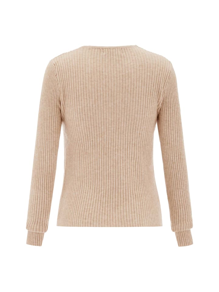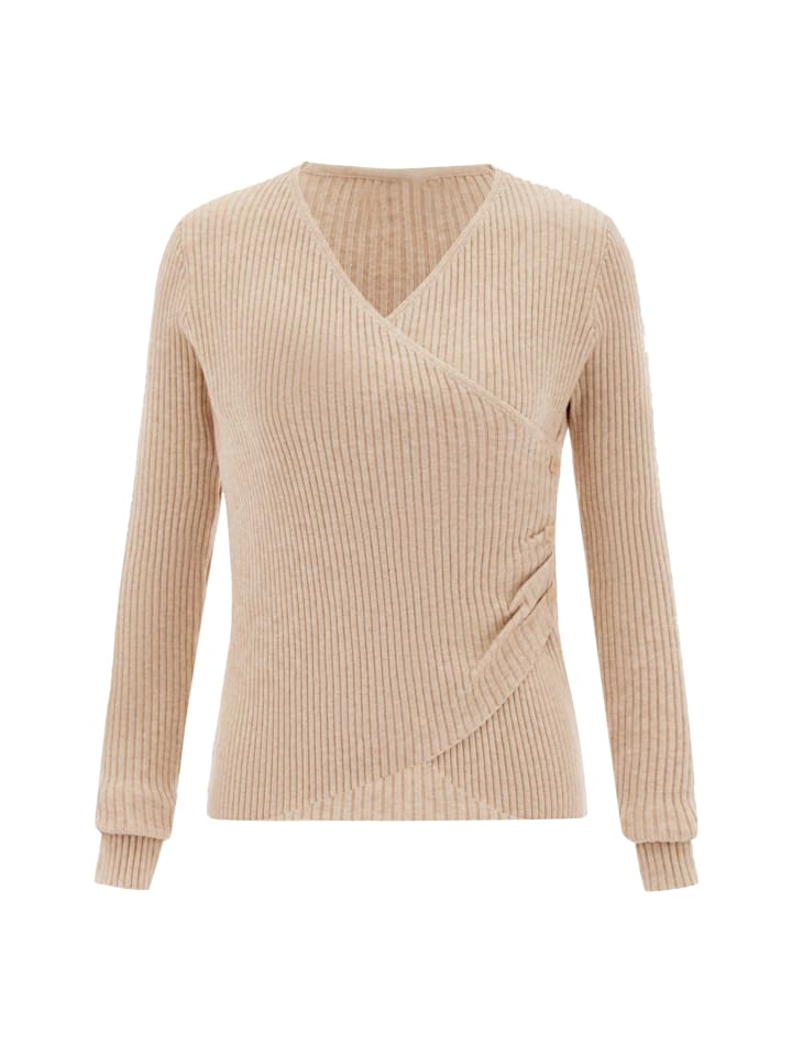 Создайте шикарный и изысканный образ с этим вязаным свитером. V-образный вырез и асимметричный подол создают современный образ. Приталенный силуэт, застегивающийся на боковую пуговицу, подчеркивает изгибы фигуры, а ребристая текстура добавляет глубины вашему образу. Идеально подходит для стильного акцента в вашем гардеробе. Разработано совместно Faina и NAEMI.