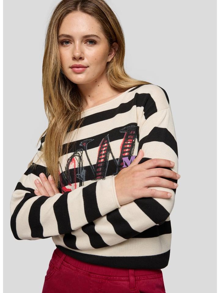 - Свитер с эффектными надписями и полосками
