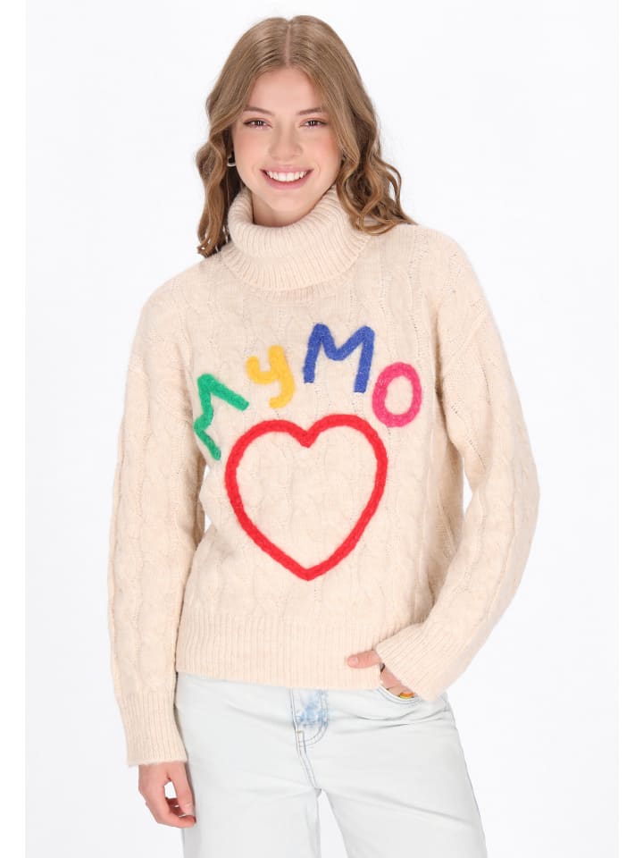 Оставайтесь в уютном и стильном свитере свободного кроя с косами из коллекции Young Fashion. Водолазка, длинные рукава и спущенные плечи создают комфортный и непринужденный силуэт, идеально подходящий для прохладных дней. Сочетание кос и игривых узоров добавляет забавную текстурную нотку этой повседневной базовой вещи, а мягкая трикотажная ткань сохраняет тепло и комфорт. Идеально сочетается с джинсами, юбками или платьями, создавая очаровательный повседневный образ.