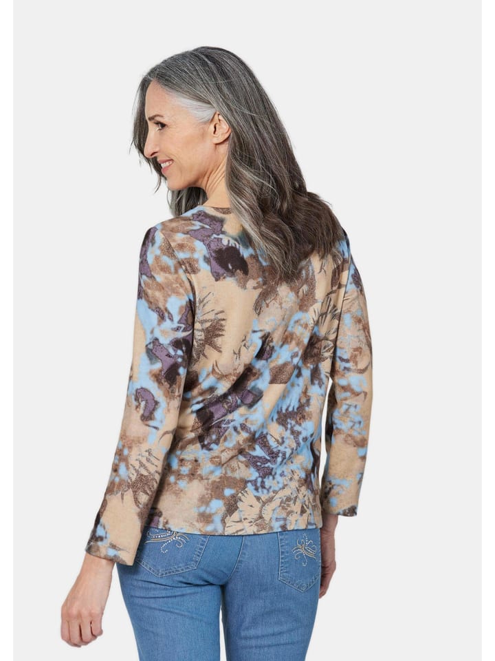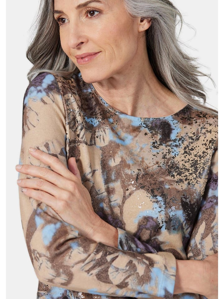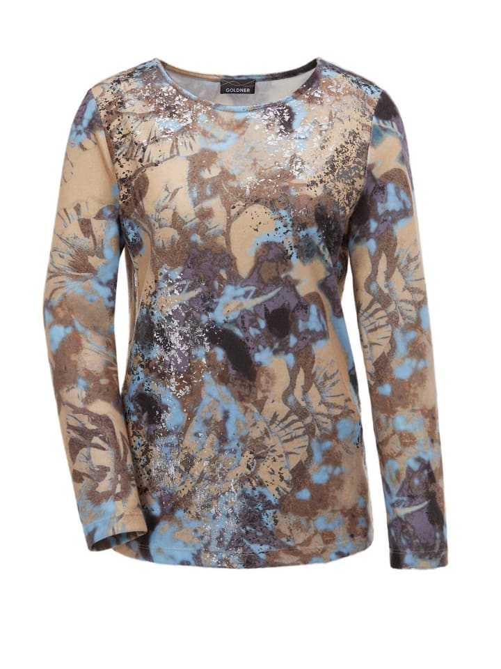 Свитшот из мягкого, плюшевого трикотажного полотна с изысканным трикотажным эффектом. Модный принт, украшающий всю рубашку с длинными рукавами, дополнен металлическими акцентами спереди. Удобный вырез-лодочка, длинные рукава и двойная строчка по низу. Содержание эластана обеспечивает максимальный комфорт. Длина: около 66 см для размера 46, около 62 см для размера 23.