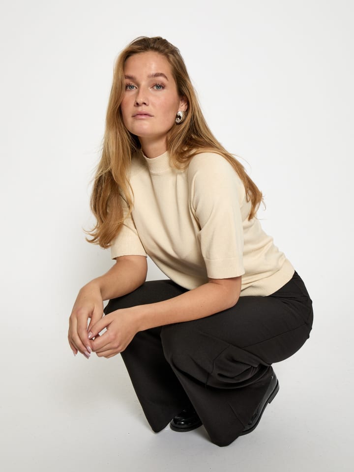 Свитер Tana изготовлен из смеси Eco Vero, экологичной альтернативы вискозе, и нейлона, что придает ему фирменное качество Tana. Свитер имеет воротник-стойку, рукава средней длины и ребристые края на рукавах, горловине и корпусе.