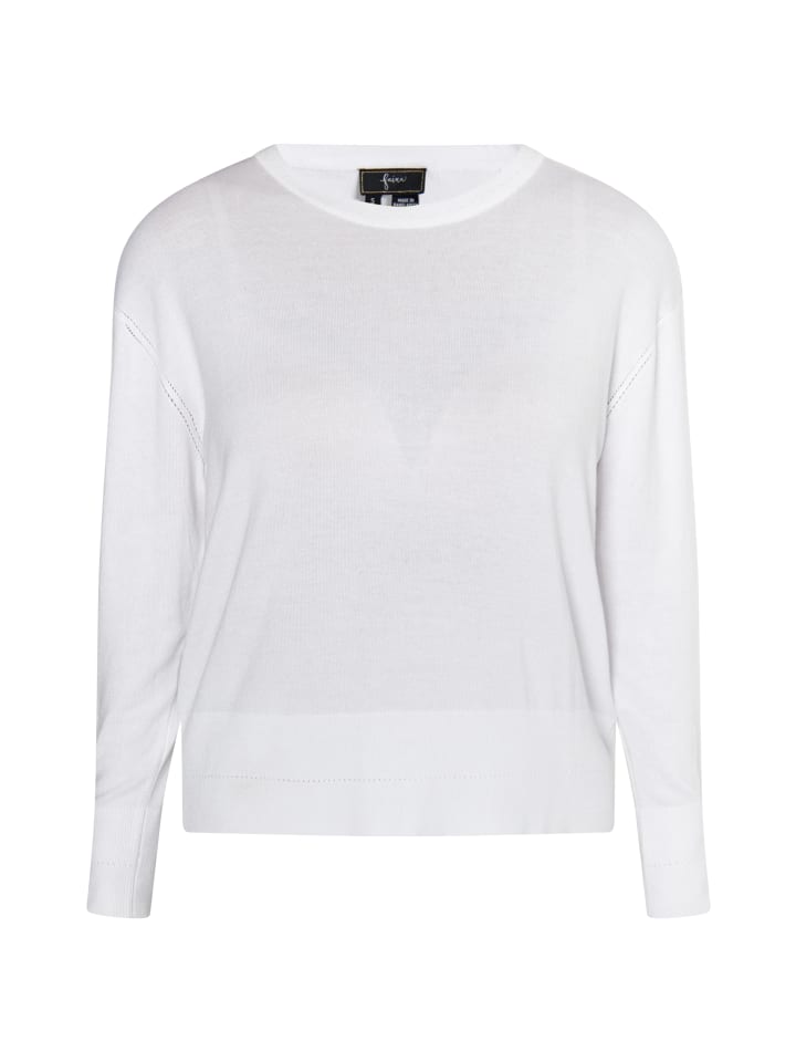 Базовые вещи составляют основу гардероба каждой женщины. Этот вневременной и стильный свитер от Faina связан из мягкой вискозной пряжи с легким блеском, что делает его очаровательным. Свободный крой со слегка спущенными плечами и круглым вырезом дополнен длинными манжетами в рубчик, украшенными маленькими люверсами. Просто идеальный базовый вариант на все случаи жизни.