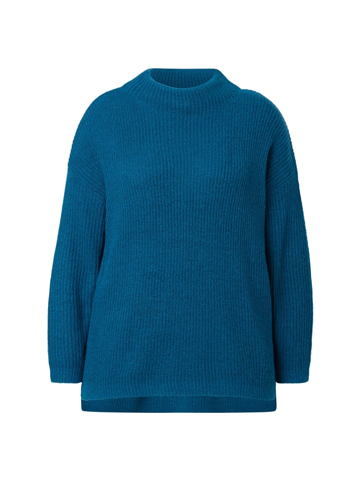 Свободный водолазный свитер из мягкой ребристой ткани. Удобный широкий водолазный воротник, длинные рукава, гладкие края. Низ с боковыми разрезами, спинка примерно на 5 см длиннее.