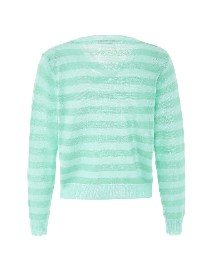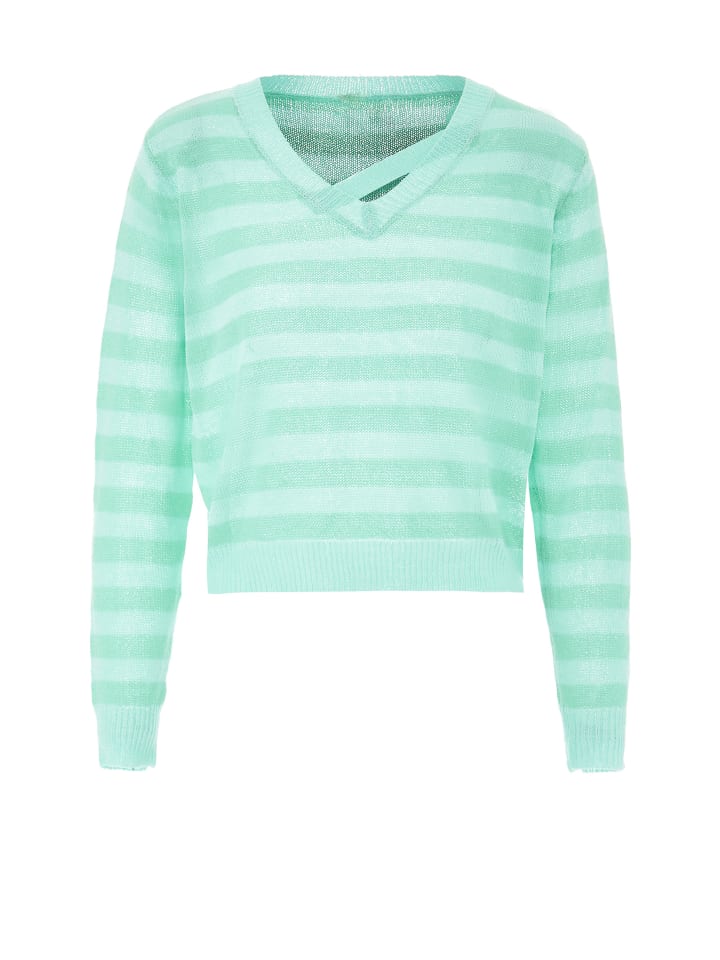 Украсьте свой повседневный стиль этим элегантным свитером с V-образным вырезом. Классический рисунок в горизонтальную полоску, ребристые манжеты и изящный воротник на горловине создают непринужденную элегантность. Мягкая ткань с легким блеском обеспечивает комфорт и ощущение роскоши. Благодаря свободному крою и подолу до бедер этот свитер идеально подходит для комфорта в течение всего дня, не жертвуя стилем. Разработанный совместно с IMMY, этот свитер сочетает в себе классический стиль и современный дизайн.