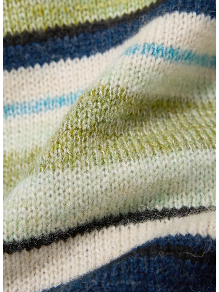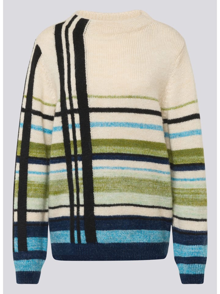 Этот уютный свитер невероятно мягкий на ощупь благодаря согревающему составу из альпаки. Разноцветный полосатый рисунок придает ему яркий вид, а небольшой воротник-стойка обеспечивает незаметную защиту. Мягкая вязка обеспечивает комфорт в прохладные дни. Согревающий состав из альпаки. Текстурная вязка. Небольшой воротник-стойка. Прямой крой. Дизайн в разноцветные полоски.