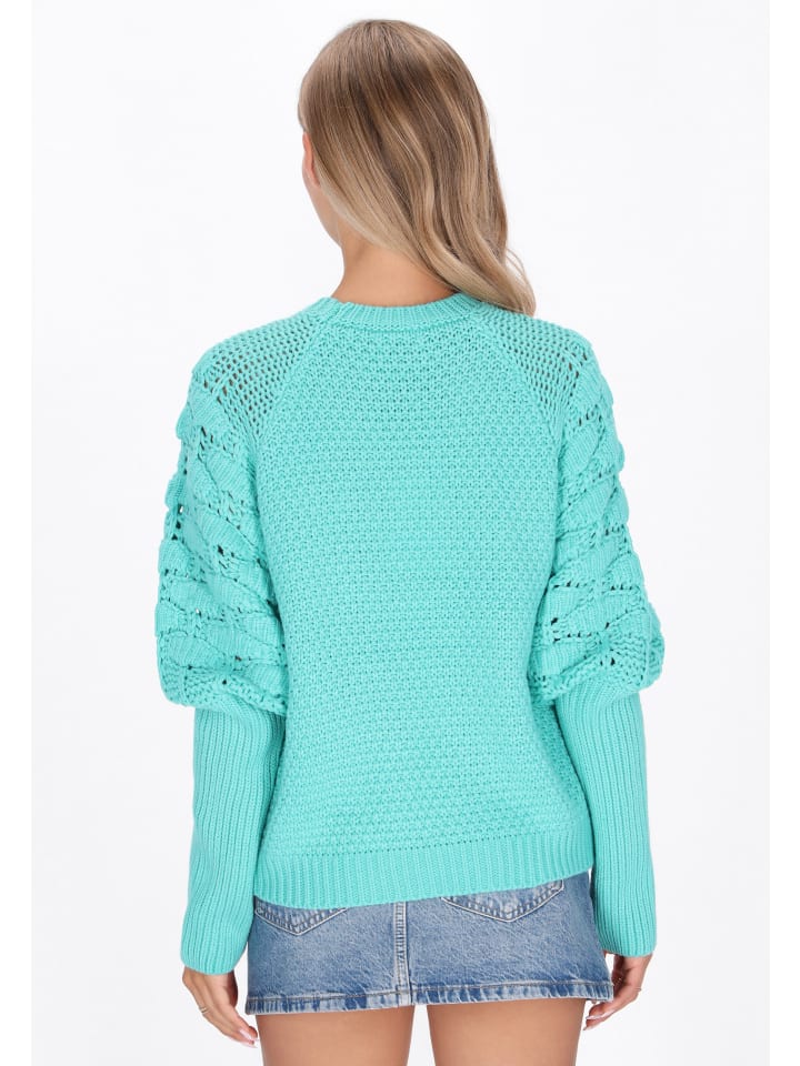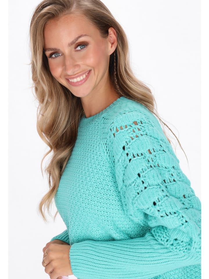 Подчеркните свой повседневный стиль с этим удобным трикотажным свитером свободного кроя. У него круглый вырез горловины и длинные рукава-фонарики, а крой реглан добавляет элегантности силуэту. Ажурный узор подчеркивает фактуру, а широкие ребристые манжеты и подол создают ощущение уюта. Эта модель станет незаменимым дополнением к вашему гардеробу и модным образам. Она входит в коллекцию Fashion Look.