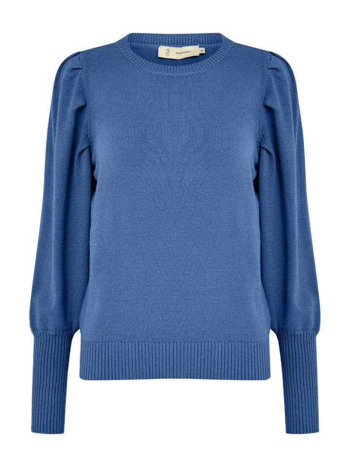 Свитер Anissa имеет круглый вырез горловины, рукава-буфы и изящные складки на рукавах. Вырез горловины и широкие манжеты на рукавах отделаны резинкой.