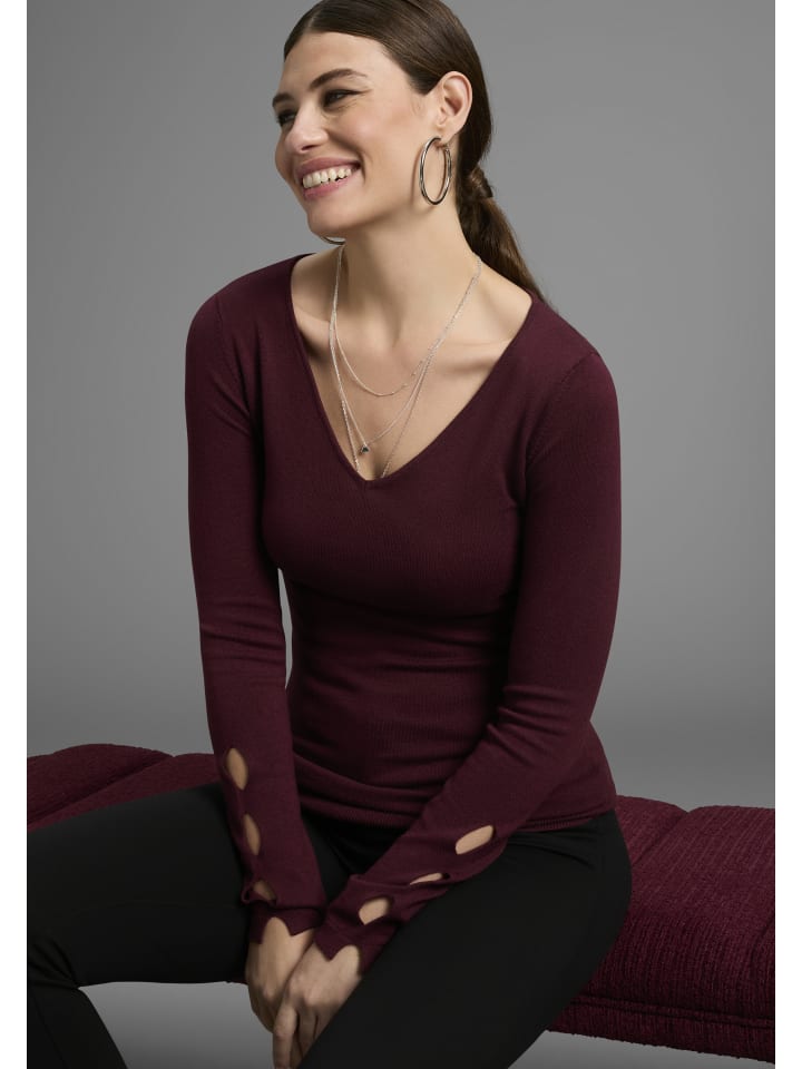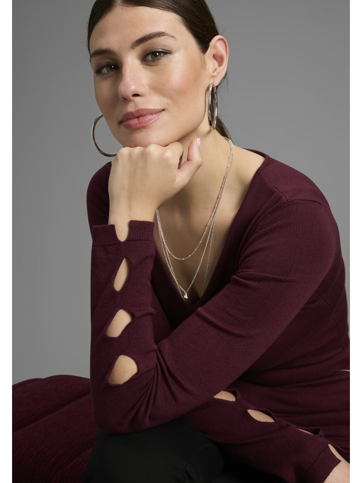 Универсальный трикотажный свитер для женщин от Bruno Banani. Приталенный крой до бедер и длинные рукава. Этот тонкий трикотажный топ согреет и обеспечит исключительный комфорт.