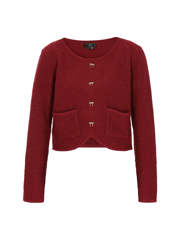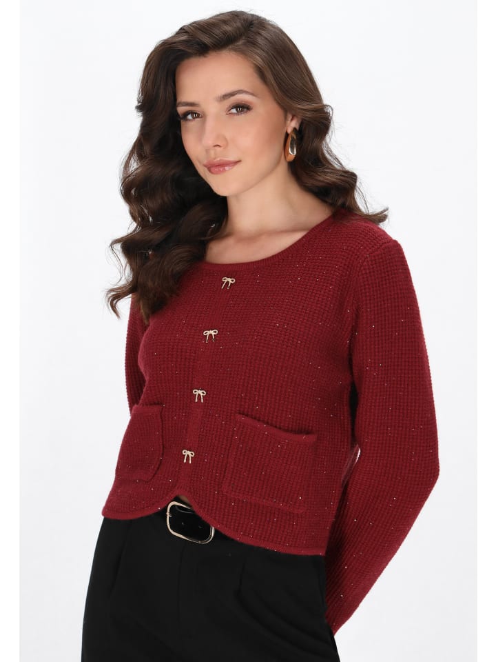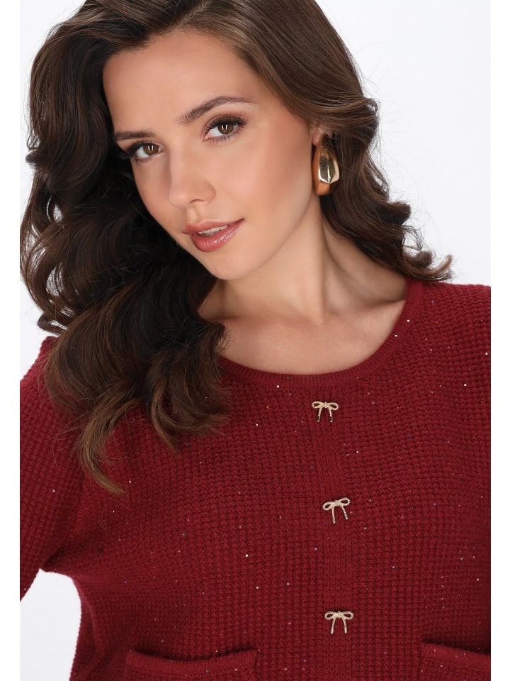 Этот кардиган стандартного кроя сочетает в себе комфорт и утонченный романтический стиль. Он связан из мягкой вафельной вязки с тонким металлическим волокном, которое придает ему сдержанный блеск. У него классический круглый вырез горловины и длинные рукава, а практичные карманы и декоративная застежка на пуговицы добавляют функциональности. Гладкий, однотонный узор делает кардиган идеальным для повседневного, модного образа. Идеально подходит для ценителей комфорта и элегантности. Этот кардиган входит в коллекцию Fashion Look.