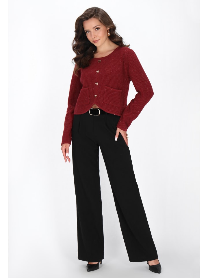 - Кардиган стандартного кроя с круглым вырезом и длинными рукавами
