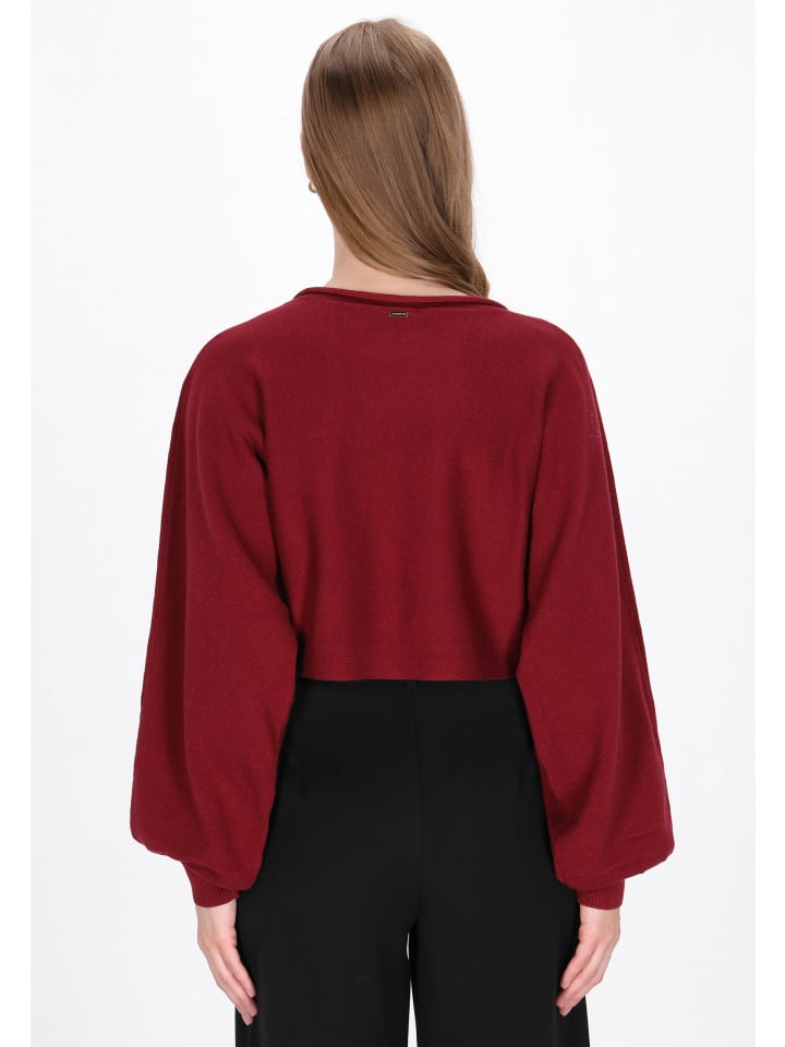 - Укороченный свитер свободного кроя с круглым вырезом и длинными рукавами-бишоп