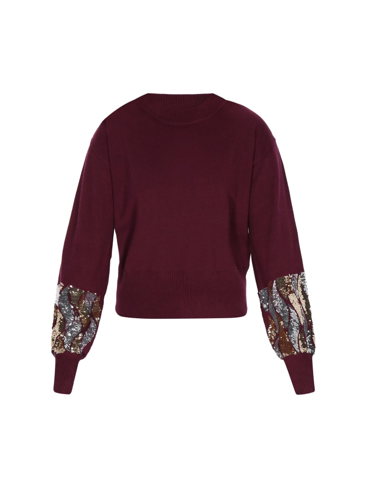Этот стильный свитер из коллекции Faina - идеальное сочетание элегантности и комфорта. Свободный крой не стесняет движений, а круглый вырез горловины и длинные, слегка присборенные рукава придают ему женственность. Изготовленный из мягкого трикотажа, свитер украшен изящными пайетками, которые придают ему нежный праздничный штрих. Мягкий узор делает свитер универсальным и удобным в использовании. Это удобный и стильный вариант, идеально подходящий для праздничных и зимних посиделок.