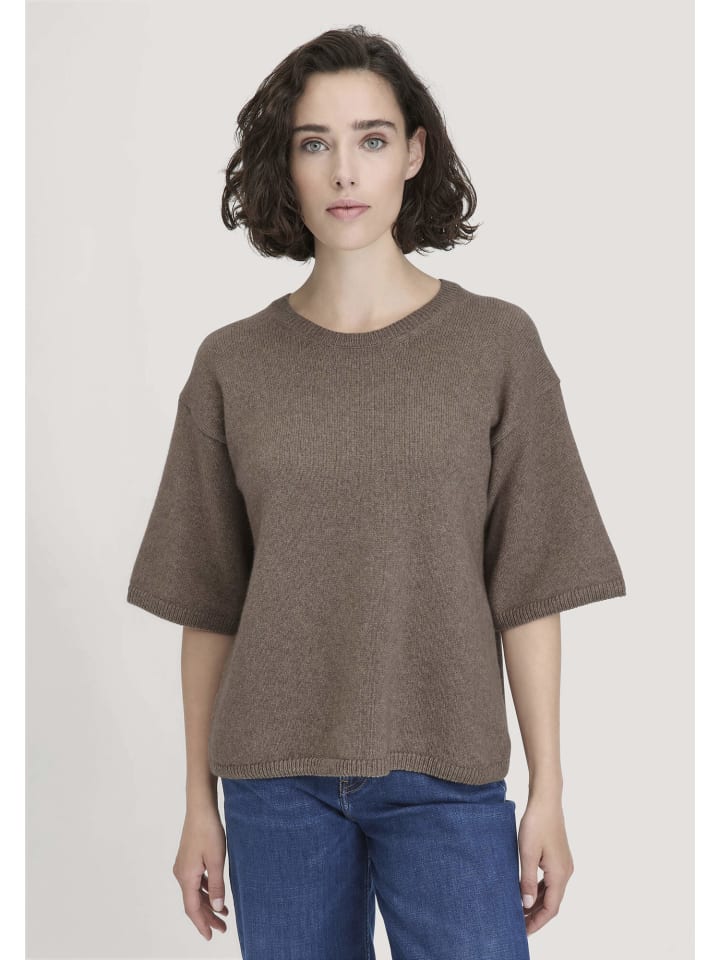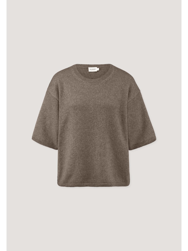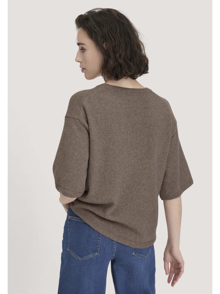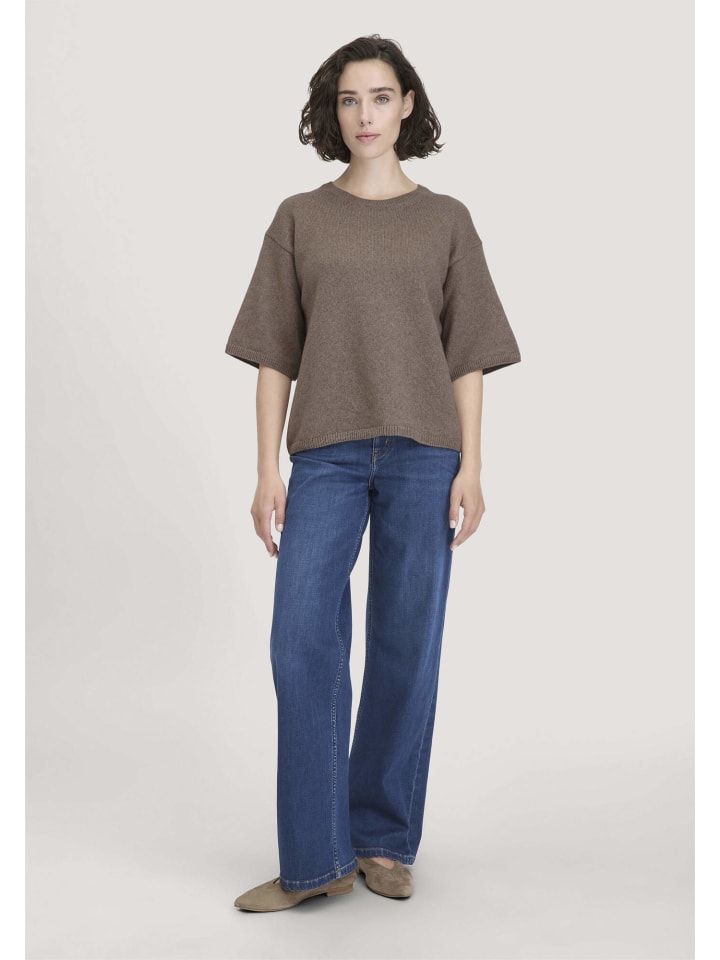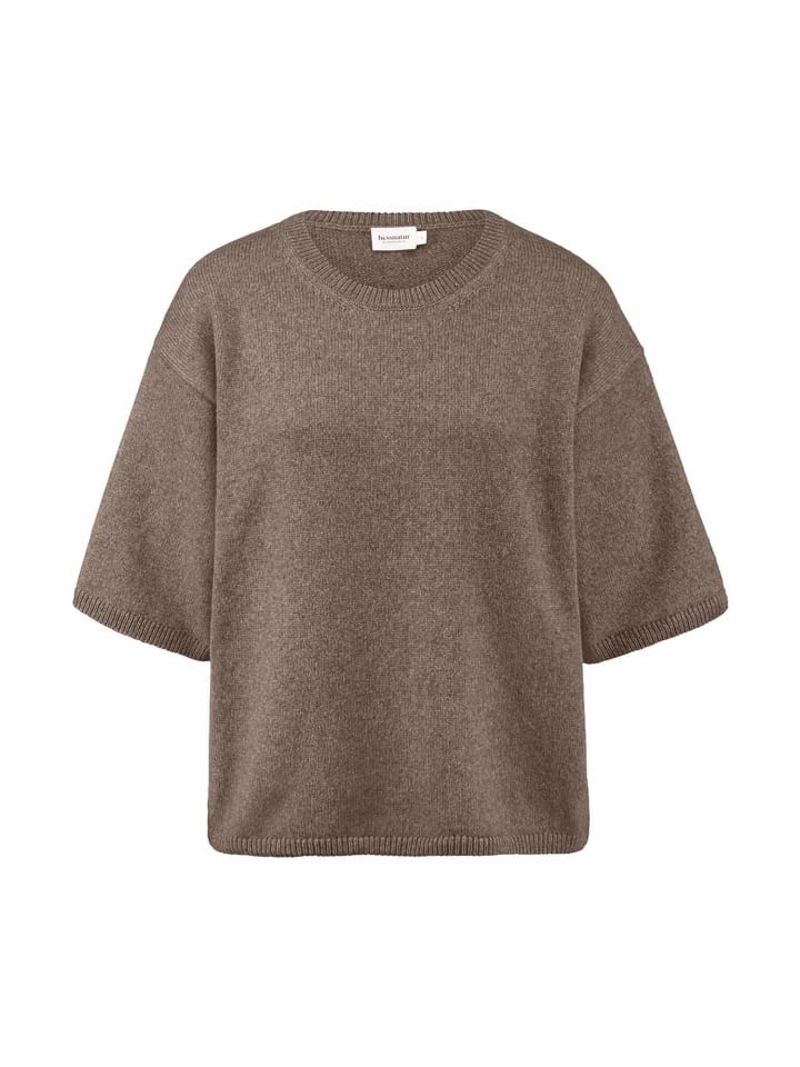 - Свободный крой, слегка меланжевый трикотажный свитер с короткими рукавами