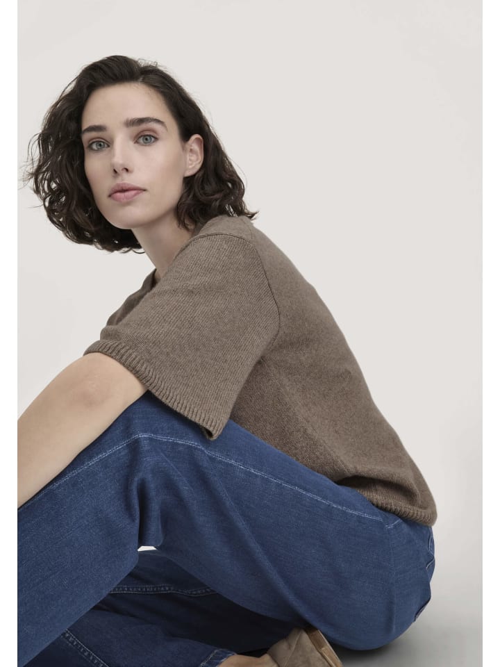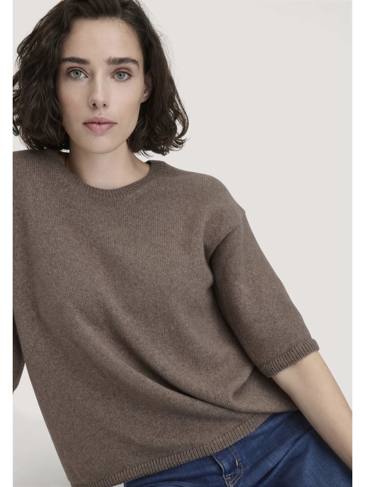 Теплый. Мягкий. Чудесное преображение. Изысканный, согревающий универсальный вариант. Этот тонкий вязаный свитер из экологичной смеси органической мериносовой шерсти сочетается с удивительно свободным стилем футболки с короткими широкими рукавами. Результат: любимая вещь, сочетающая в себе легкость летней рубашки с теплом и элегантностью свитера. Для всего, что приходит и остается.