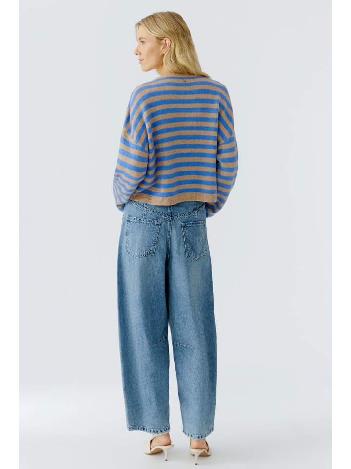 Очень уютный полосатый свитер в современном стиле: свободный и укороченный