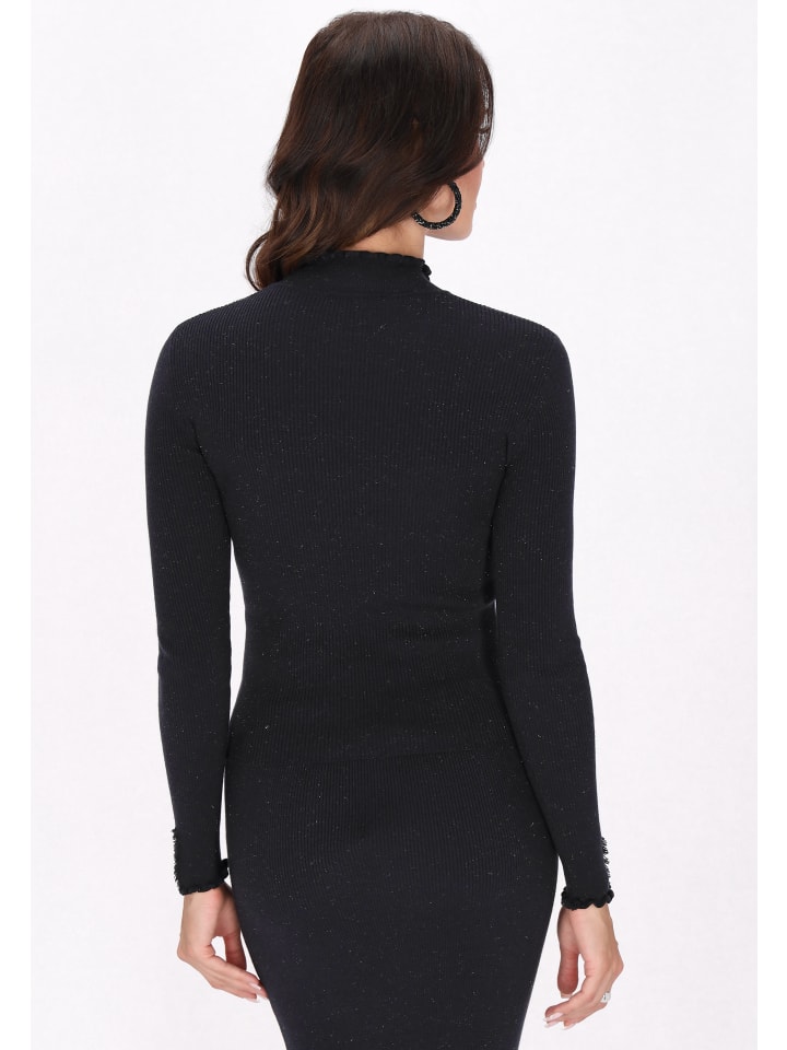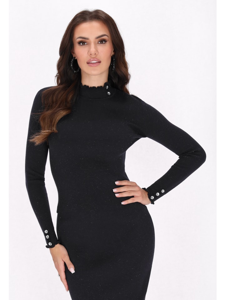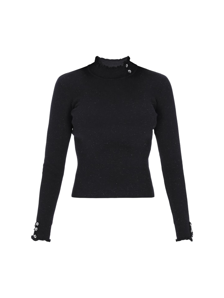 Подчеркните свой стиль с этим приталенным свитером с воротником-стойкой и длинными рукавами. Оборка и декоративные пуговицы подчеркивают элегантность, а гладкий крой делает его универсальным. Эта удобная модель из трикотажного полотна в рубчик идеально подходит для создания элегантного и в то же время повседневного образа. Этот свитер входит в коллекцию Fashion Look.