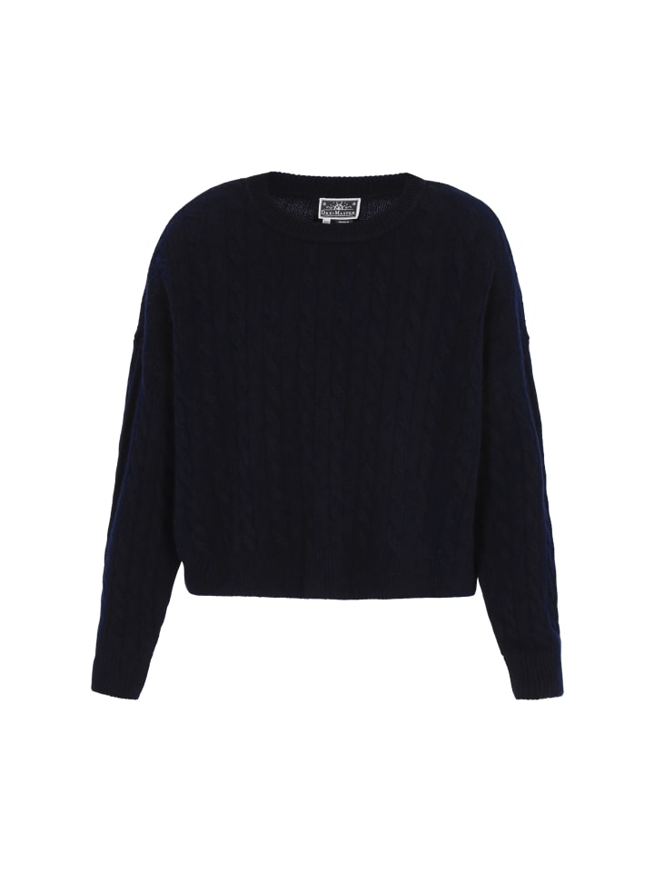 Классический трикотажный свитер из коллекции «Морская жизнь». Свободный крой и спущенные плечи, фактурный узор «косы», создающий непринужденный образ. Круглый вырез горловины и длинные рукава обеспечивают комфорт, а ребристый подол - уютный вид. Идеально подходит для многослойного ношения или самостоятельно в прохладные дни.