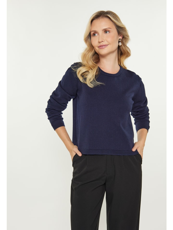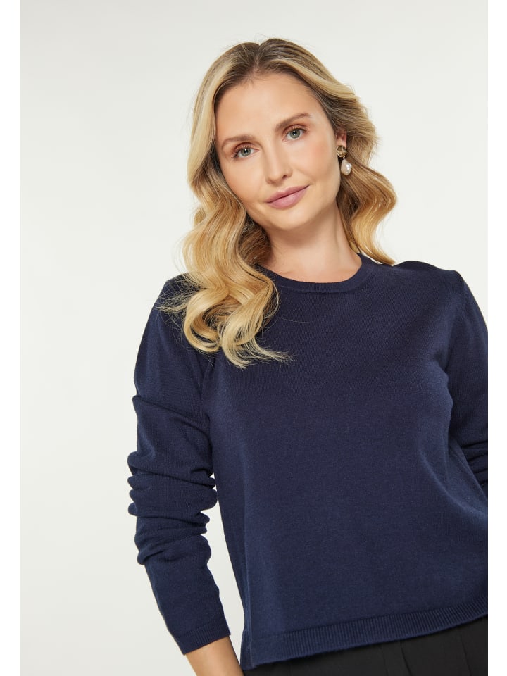 - Свитер прямого кроя с круглым вырезом и длинными рукавами
