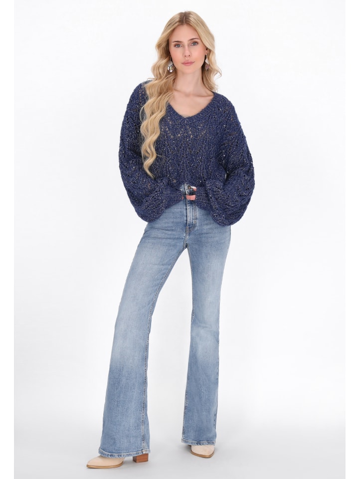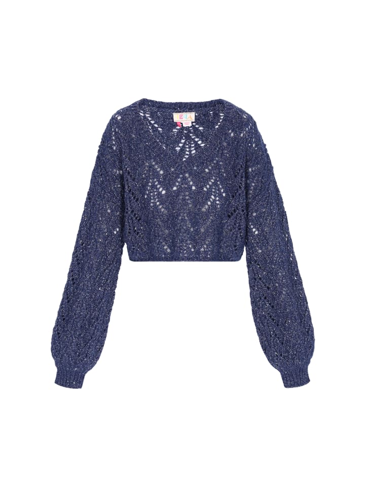 Откройте для себя модное дополнение к вашему гардеробу с этим свободным свитером. Укороченный силуэт и глубокий V-образный вырез, длинные рукава и спущенные плечевые швы создают непринужденный образ. Трикотажное полотно дополнено металлизированной нитью и пайетками, а ажурный узор добавляет нотку шика, делая его идеальным для повседневных и комфортных образов. Этот свитер входит в коллекцию Fashion Look.