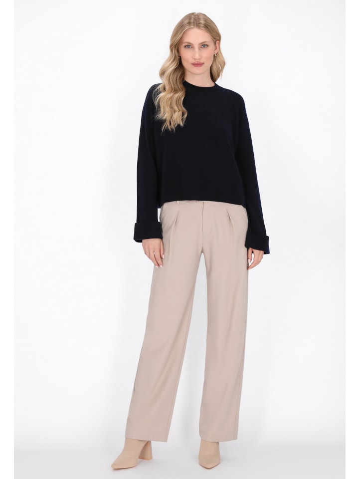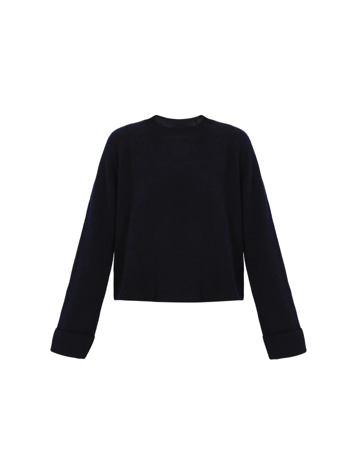 - Свободный свитер с круглым вырезом горловины и длинными подвернутыми рукавами