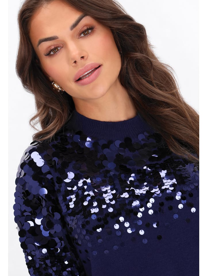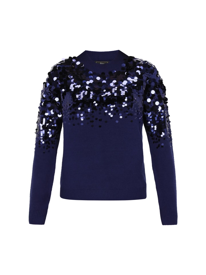 Стильный свитер из коллекции Faina, сочетающий в себе комфорт и элегантность. Изготовлен из мягкого трикотажного полотна, он обеспечит комфорт как на каждый день, так и для особых случаев. Прямой крой, классический круглый вырез горловины и длинные рукава делают его универсальным предметом одежды. Верхняя часть украшена эффектными пайетками, которые создают блестящий узор, благодаря чему свитер идеально подходит для создания праздничного, шикарного и модного образа.