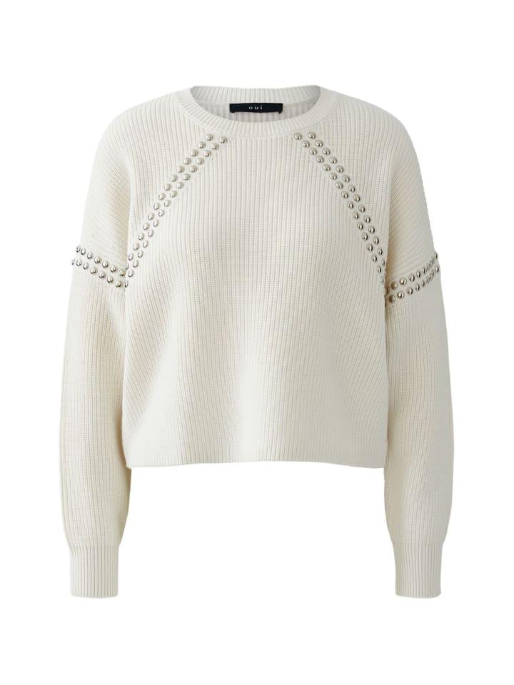 Свитер с металлическими заклепками на рукавах и на предполагаемой линии реглана
