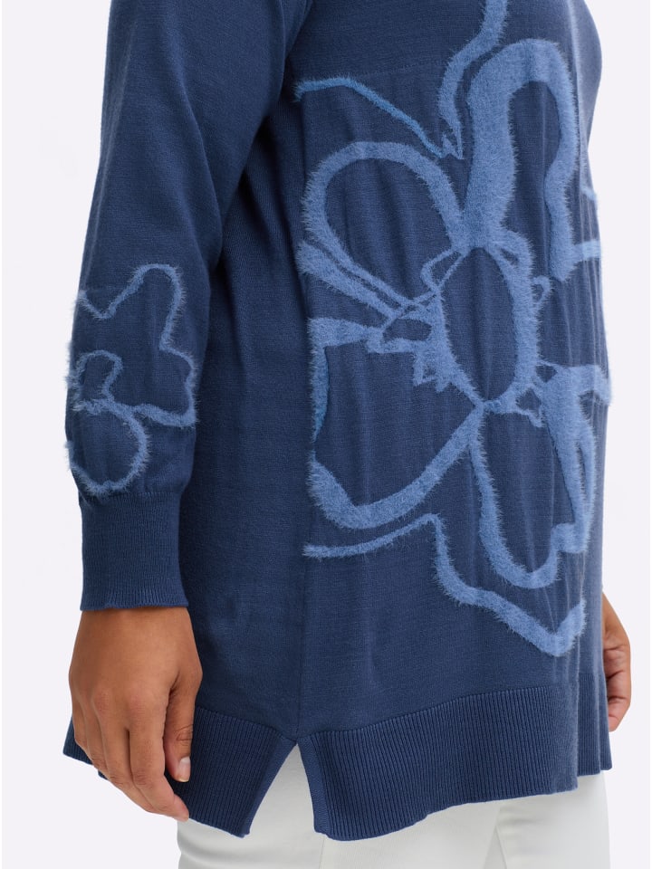 Свитер с узором джинсово-синего цвета sheego