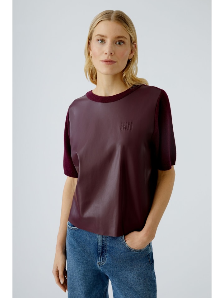 Свитер с короткими рукавами и вставкой из искусственной кожи спереди, подчеркивающей фигуру