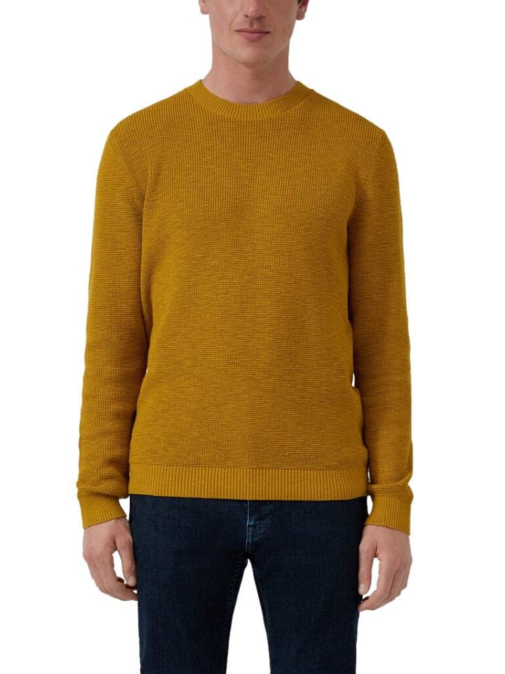 Желтый вязаный свитер - стильный, удобный и вне времени Этот вязаный свитер с круглым вырезом станет вашим новым фаворитом в каждом сезоне. Благодаря своему эффектному текстурированному рисунку он привнесет модную изысканность в вашу повседневную жизнь - даже простые наряды обретут что-то особенное. Будь то офис, поездка на выходные или неспешная прогулка: свитер впечатляет своим высоким качеством изготовления и стильной сдержанностью. Универсальная классика для вашего гардероба Благодаря классическому крою и эластичным ребристым манжетам на подоле и рукавах этот свитер обеспечивает оптимальную посадку и высокий комфорт при ношении - в течение всего дня. Дышащий хлопок делает его приятным для кожи и идеальным для переменчивой температуры. Идеально подходит для создания многослойных образов или для ношения отдельно. Ваши преимущества на первый взгляд: Яркий текстурированный рисунок для современного, но вневременного образа, Чистый хлопок: приятный для кожи, дышащий и прочный, Удобный классический крой - идеально подходит для всех типов телосложения, Эластичные ребристые манжеты для идеальной посадки, Универсальные варианты стилей - от повседневного до элегантно-повседневного. Высококачественные материалы для длительного удовольствия. Изготовленный из 100% чистого хлопка, этот трикотажный свитер приятно мягкий на ощупь. Хлопок не только особенно приятен для кожи, но также прост в уходе и долговечен - настоящий плюс для вашей повседневной жизни. Информация о товаре: Материал: 100% хлопок, Вырез: Классический круглый вырез, Покрой: Стандартный крой - удобный и свободный, Дизайн: Текстурированный рисунок со стильным характером, Манжеты: Ребристые манжеты на рукавах, горловине и подоле. Для кого этот трикотажный свитер? Ищете ли вы надежную универсальную вещь для офиса или хотите дополнить свой образ для отдыха - этот свитер адаптируется к вашему образу жизни. Он идеально подходит для мужчин, которые ценят качество, стиль и комфорт. Благодаря простоте ухода он прослужит долго, даже при частой носке и стирке. Часто задаваемые вопросы - четкие ответы: Можно ли стирать свитер в стиральной машине? Да, благодаря чистому хлопку его можно стирать при низкой температуре. Потеряет ли свитер форму после стирки? Нет, манжеты из рубчатой ткани, сохраняющие форму, обеспечивают долговечность. Какой у свитера фасон? Классический крой обеспечивает удобную посадку, не слишком обтягивающую. Вы можете покупать без риска. У вас есть 30 дней, чтобы передумать - если вы не полностью удовлетворены, вы можете легко вернуть товар. Доставка по Германии всего 4,99 евро. Наша служба поддержки всегда готова ответить на ваши вопросы. - Проверенное качество s.Oliver - Хорошая посадка - Высокий комфорт при носке - Материал: 100% хлопок
