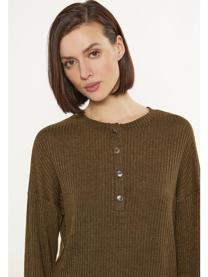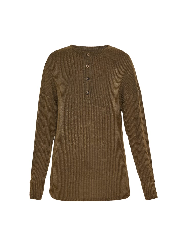 Откройте для себя этот стильный свитер свободного кроя со спущенным плечом. Круглый вырез и длинные рукава легко дополнят ваш повседневный образ. Планка с пуговицами и металлизированная нить добавляют изюминку ребристому трикотажу, обеспечивая уют и комфорт в повседневной носке из коллекции Comfortable.
