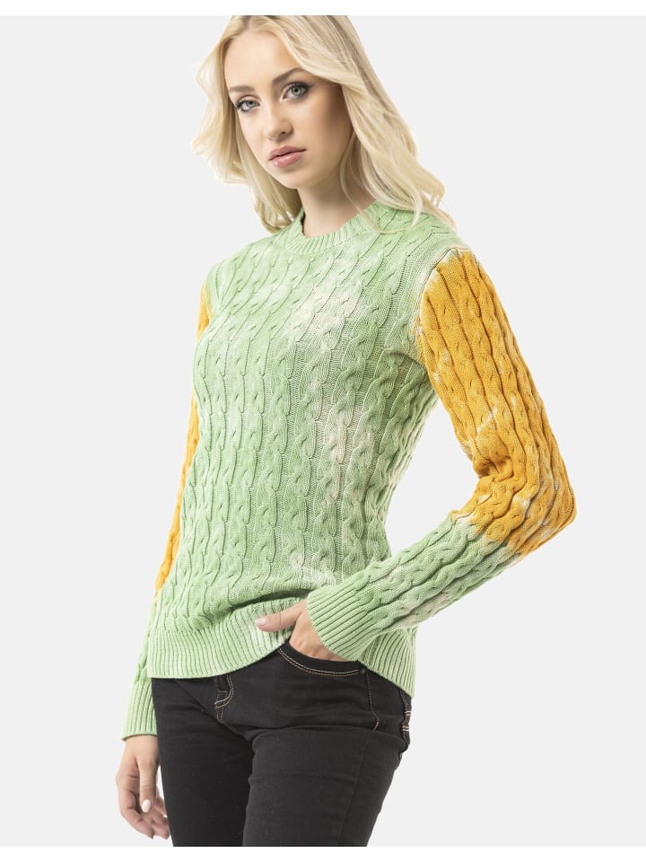 Женский вязаный свитер WP266 привнесет цвет и текстуру в повседневную жизнь. Благодаря креативному дизайну с цветовыми блоками, классическому узору косичек и асимметричным рукавам он станет по-настоящему эффектным предметом гардероба. Круглый вырез горловины, ребристые манжеты и мягкий трикотаж обеспечивают комфортное ношение - идеально подходит для непринужденных образов для отдыха, креативных уличных сочетаний или как привлекательный повседневный наряд.