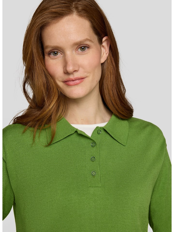 Тонкий трикотажный свитер со спортивным воротником-поло, элегантной планкой на пуговицах и удобным подолом. Ребристые манжеты и подол с боковыми разрезами завершают образ. Идеально подходит для повседневной носки или неформальных случаев. Воротник-поло с планкой на пуговицах. Ребристые манжеты и подол. Боковые разрезы по подолу. Гладкая трикотажная поверхность. Мягкая смесь материала с модалом.