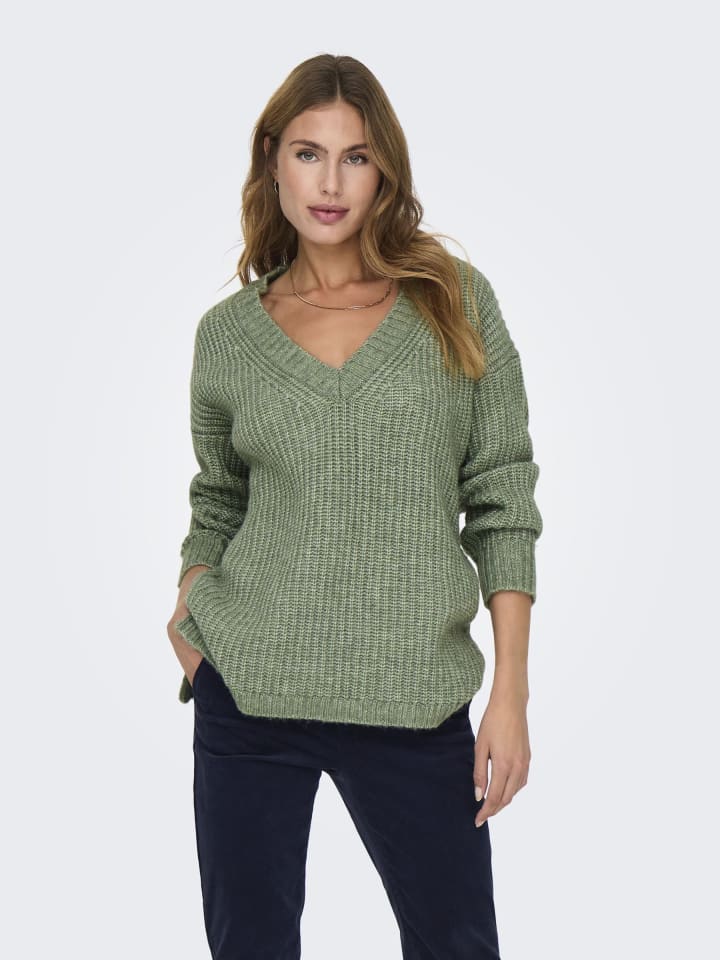 Вязаный свитер в цвете зеленая изгородь ONLY