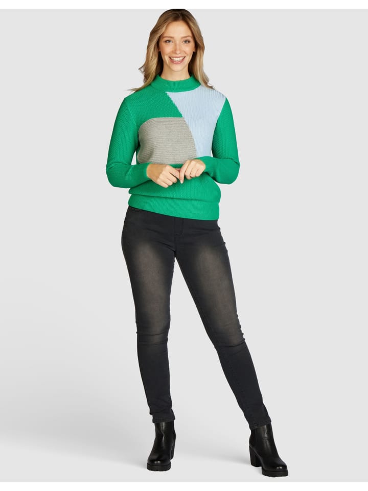 Возможно, ваш новый фаворит: трикотажный свитер от NAVIGAZIONE! Широкий воротник-стойка согреет вас, а широкий подол обеспечит идеальную посадку. Сочетание узора «семянка» и гладкой вязки создаст модный образ. Цветовая гамма: темно-зеленый и свежий сине-серый - ваш стильный образ!