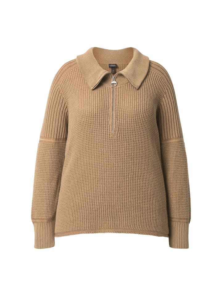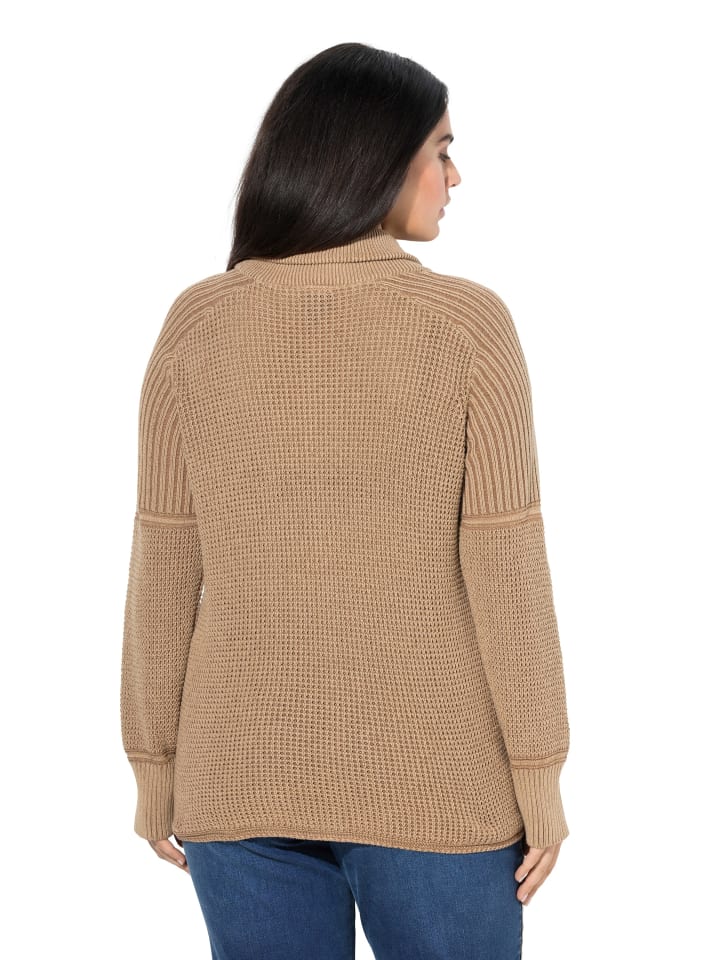 Свободный свитер из мягкого тонкого хлопка. Модный винтажный вид благодаря кислотной стирке. Водолазка с высокой застежкой-молнией, длинные рукава реглан и ребристые манжеты.