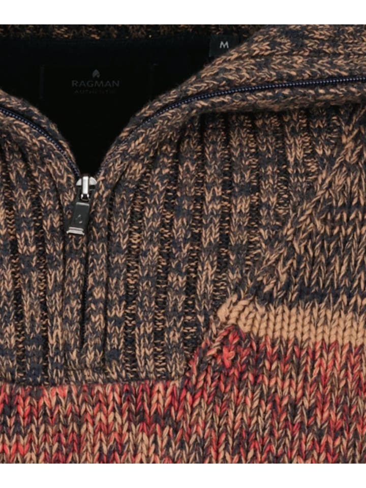 Этот свитер RAGMAN, связанный третьей толщиной, относится к категории «тяжелых». Красивая гладкая вязка с полосатым и твидовым узором идеально подходит к нему и создает спортивный образ. Высокая водолазка на молнии идеально подходит для ветреной и холодной погоды, а дома или в офисе свитер можно носить расстегнутым. Изготовленный из 100% чистого хлопка, он невероятно комфортен в носке и не вызывает зуда.
